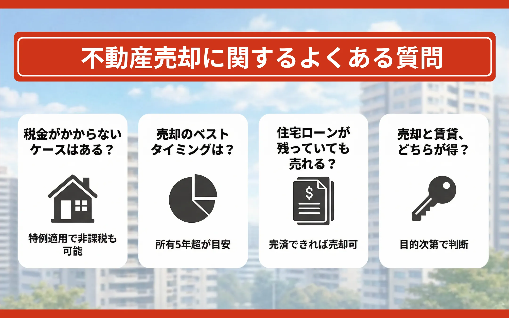 売却を検討している方が抱きやすい疑問に、一問一答形式でお答えします。