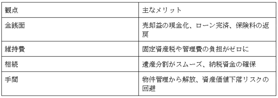 売却によって得られる恩恵は、まとまった現金だけではありません。