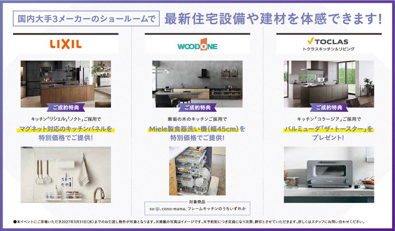 本イベントにご参加いただき、協賛メーカー3社いずれかの住設機器をご成約いただいた方に