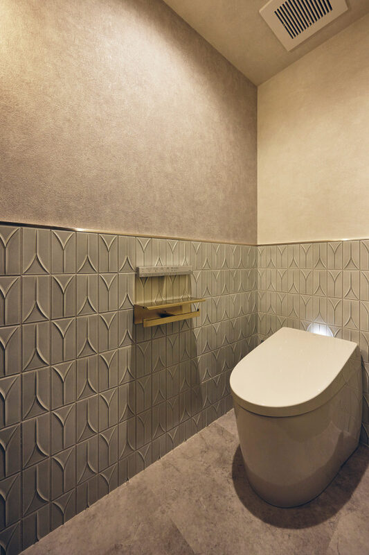 もともと、前の居住者がかなりこだわった内装に仕上げていました。玄関の腰壁にはトルコ製のタイルが張られ、廊下は珍しい青い大理石のフロア。トイレはエジプト製のどっしりとした石造りの便器が据えてありました。トイレは壊れたら直せないので交換するしかないと思っていましたが、その他の部分はできるだけ元の意匠を残せたらという思いも。一度はスケルトンリフォームにすることを決めたのですが、解体工事が始まってから、「やっぱりどうしても残したい」と思い直し、Konishiさんに相談。工事の計画が変わり、現場との調整は大変だったと思いますが、大理石の床やタイルの壁を可能な限り残してもらうことができました。