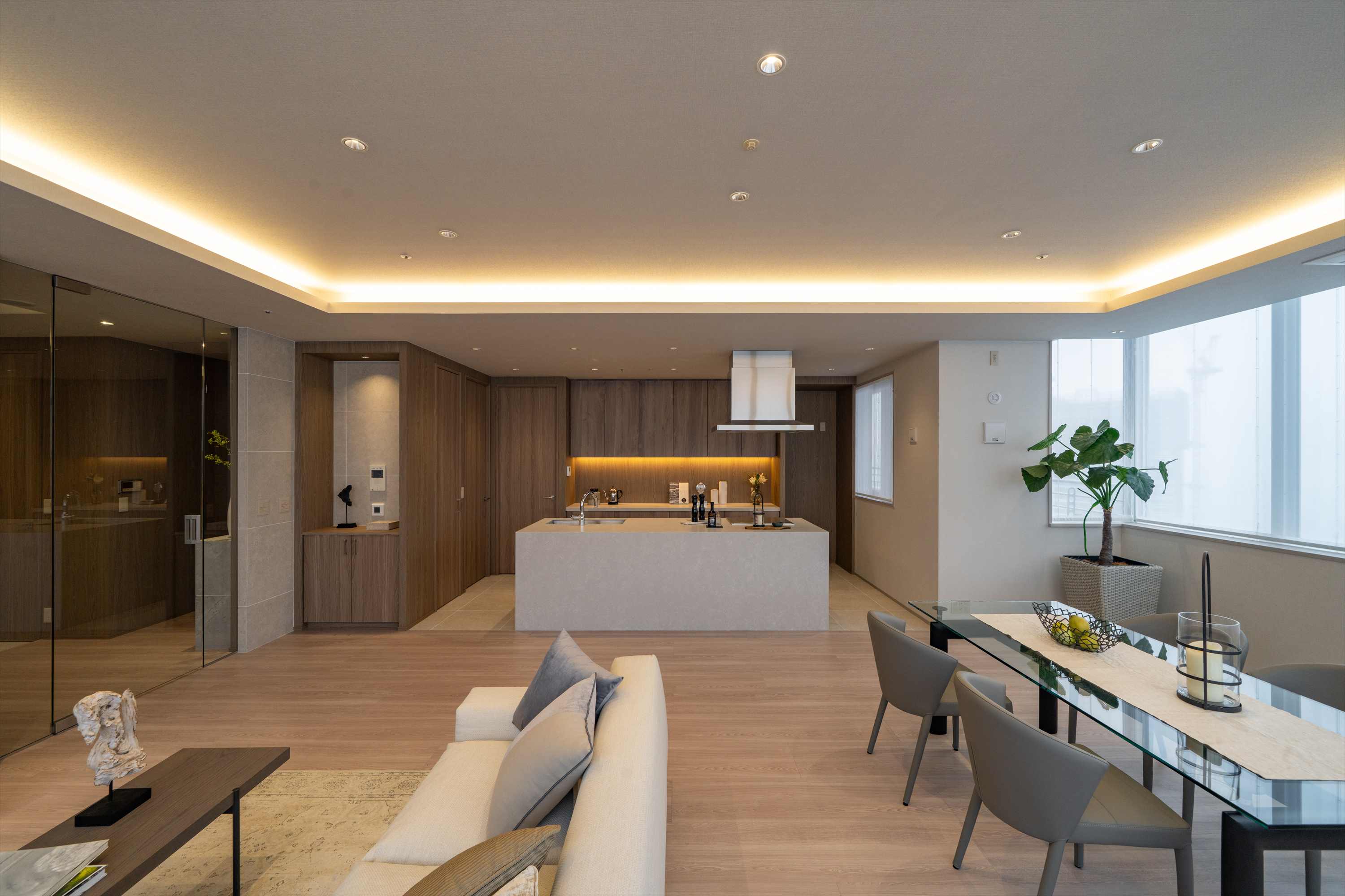 大阪市福島区、タワーマンションの高層階。100㎡超えのお部屋を“extraordinary space”(非日常な空間)をテーマに、贅沢な2LDKにリノベーション。