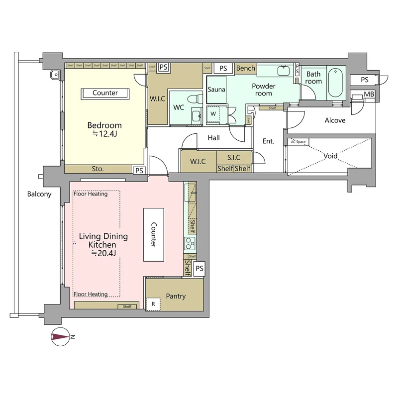 靴だけでなく、ゴルフバックやキャリーケースなどの大きな荷物を置ける収納も確保しました。