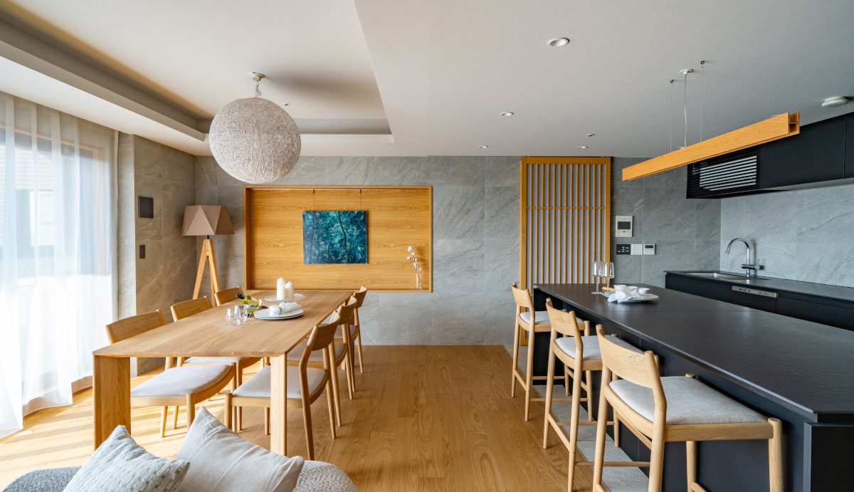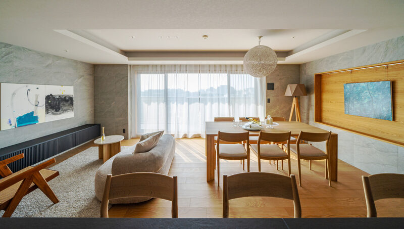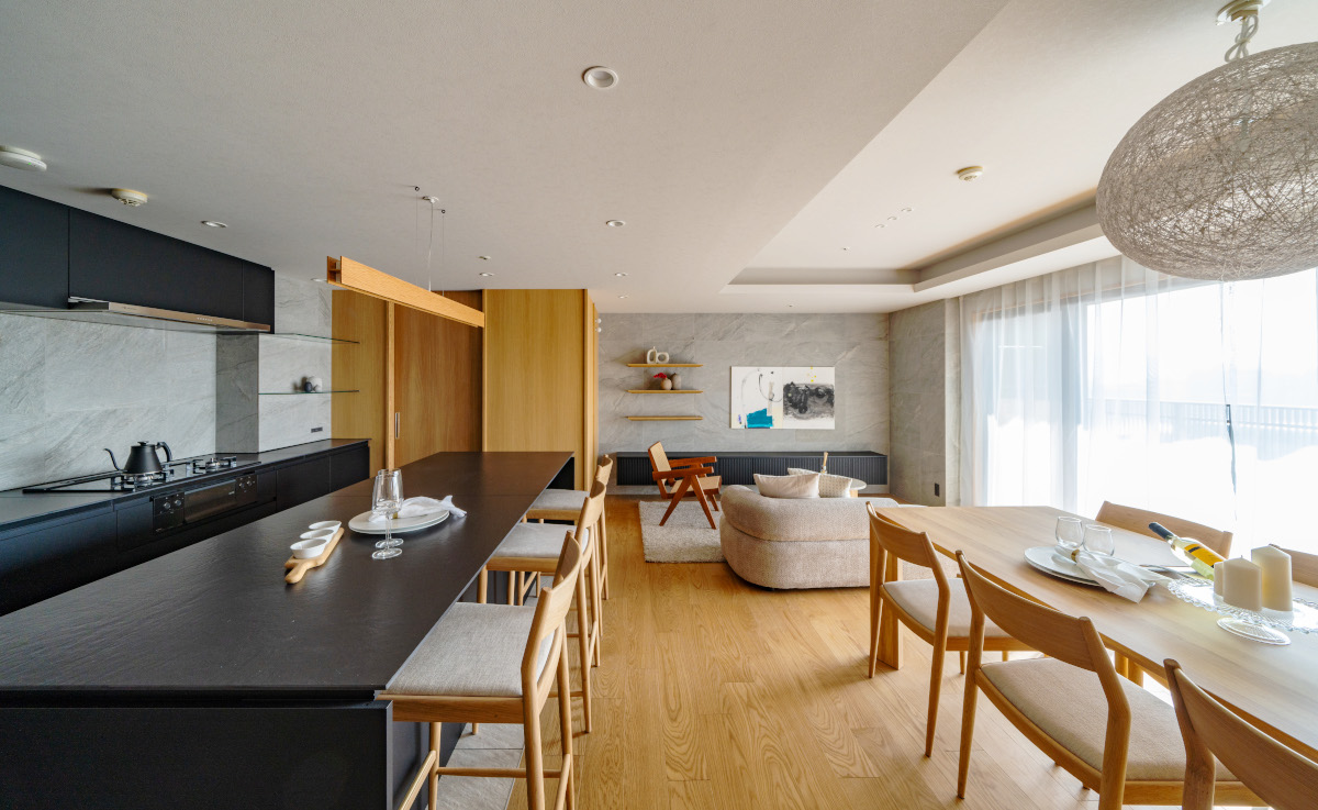 京都市中京区にあるマンションの高層階。100㎡超えのお部屋を“Urban Retreat”(都市の別荘)をテーマに、贅沢な1LDKにリノベーション。