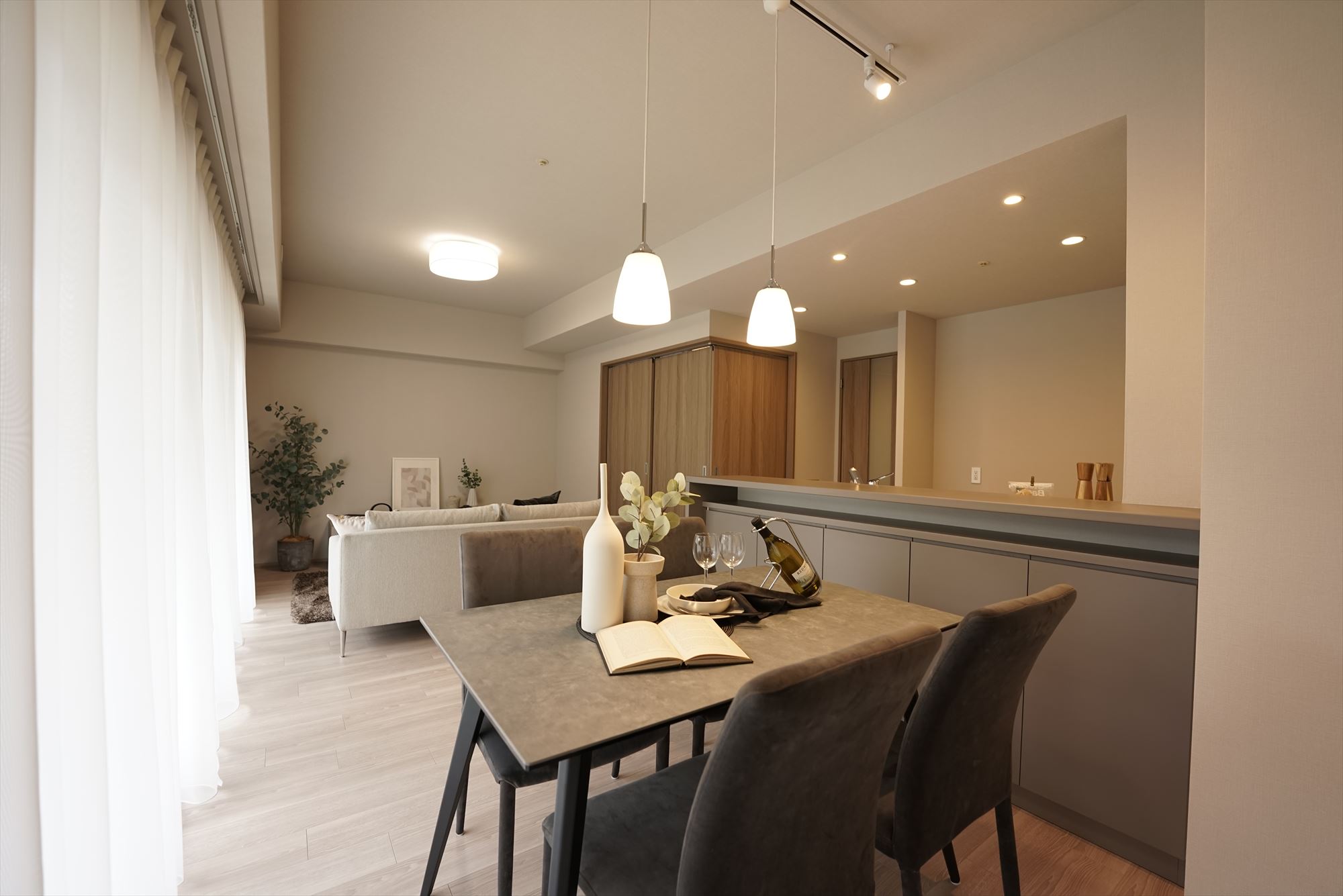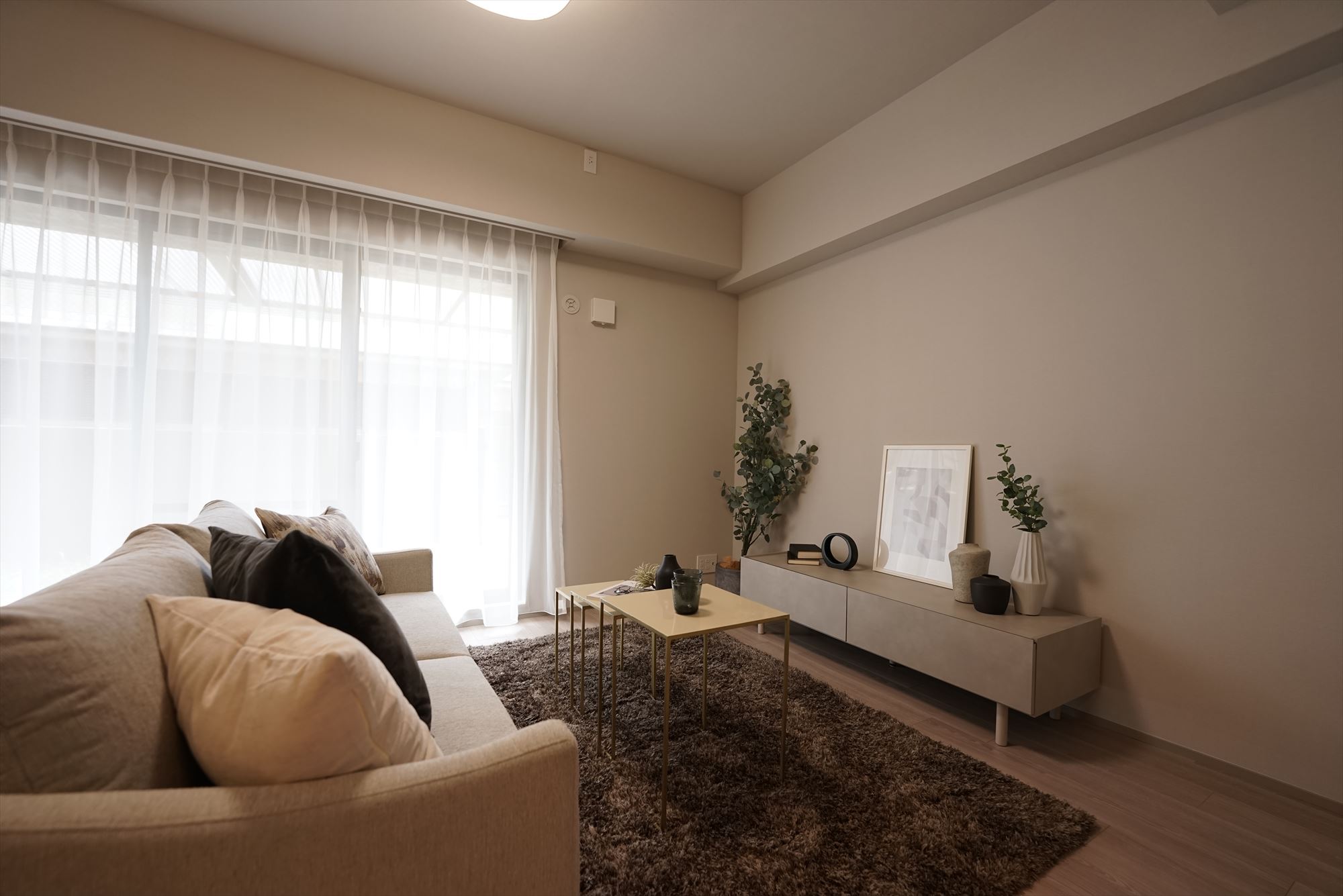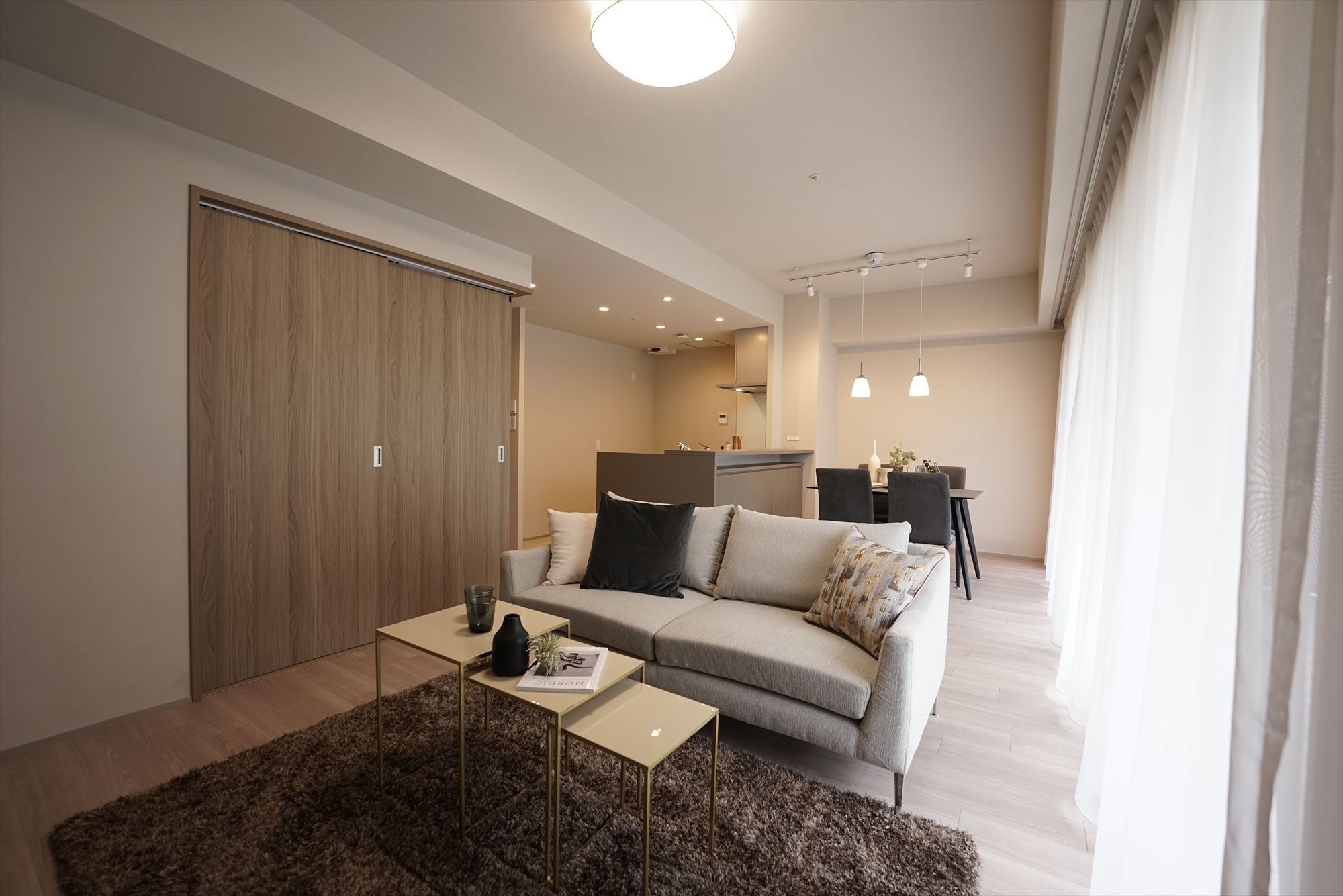 広々とした空間、陽光あふれるリビング、